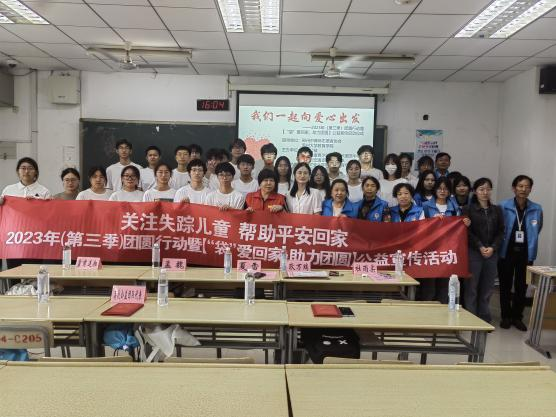 于博四C206举行2023年(第三季)团圆行动暨“袋爱回家,助力团圆”公益宣传启动仪式。邳州市青年志愿者协会秘书长孟魏、“宝贝回家”徐州地区负责人夏雪、唯爱公益组织会长耿万瑞、副会长皇甫连湘、能动做爱直播