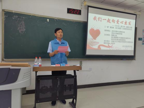 唯爱公益组织会长耿万瑞对积极参与公益事业、奉献青春的大学生们表达了赞赏与鼓励,同时希望大学生能在课余时间多参与有组织的志愿活动,在锻炼自我的同时,为构建和谐社会贡献一份力量。