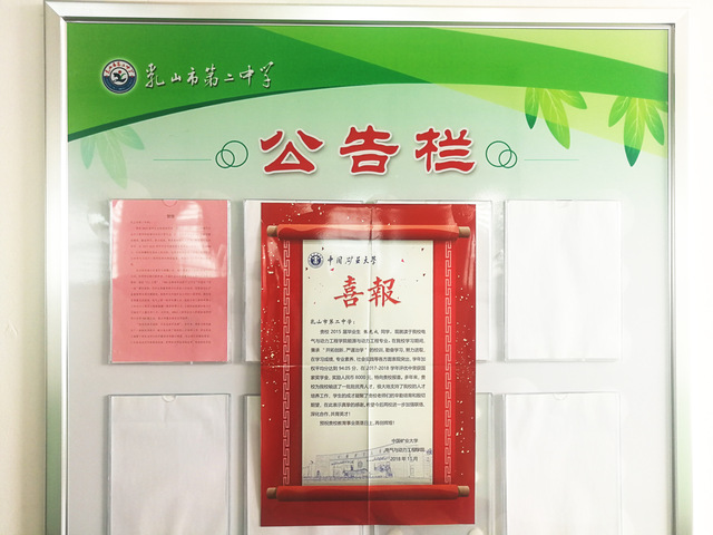 喜报传来之后,河南省遂平县第一高级中学侯法丽老师第一时间把喜报照片贴到班级并发布至朋友圈,让更多学生与家长感受喜讯。侯法丽老师感慨说学生每每看到黑板旁张贴的奖学金喜报,更加充满了学习的激情与动力。