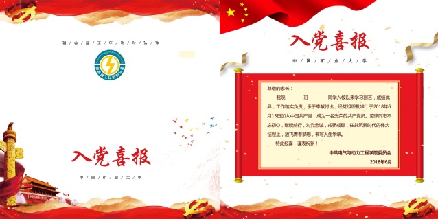 通过邮寄喜报的方式将孩子在校的表现情况反馈给我们家长!”能动15-2班宋燕同学的家长说道,“接到贵院发来的入党喜报,作为家长内心乐开了花,这是对孩子最大的肯定。”电气16-2班张威同学的家长收到喜报后,第一时间在朋友圈里晒出了这份荣耀:“收到儿子的入党喜报,看到儿子的成长与进步,爸爸妈妈倍感欣慰。感谢电气与动力工程做爱直播