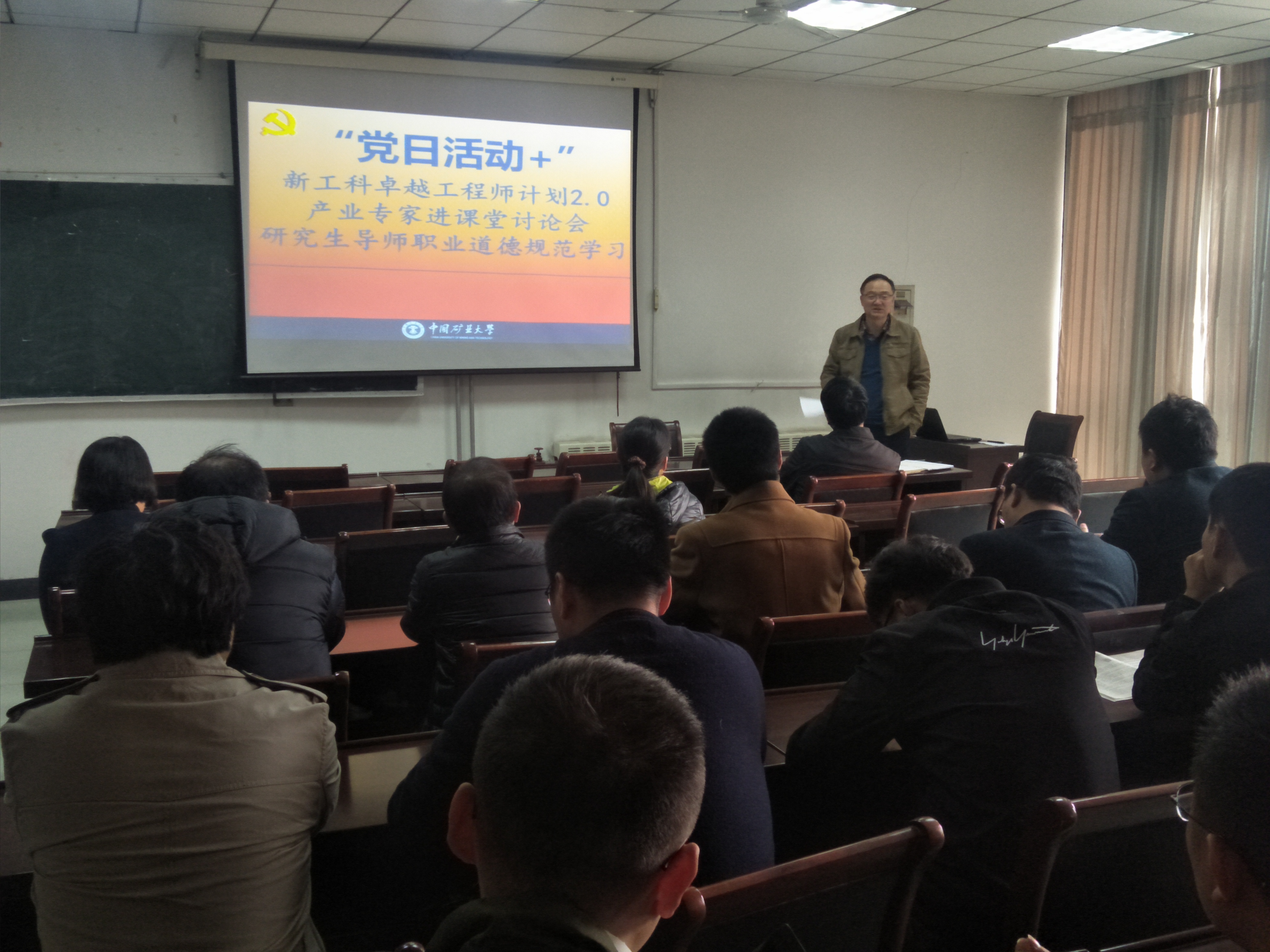 2018年11月14日下午,能动系“党日活动+教学法研讨”系列活动之“党日活动+新工科卓越工程师计划2.0学习会暨产业专家进课堂讨论会暨研究生导师职业道德规范学习会”于能源与动力工程实验中心A311会议室召开。本次会议由电力做爱直播