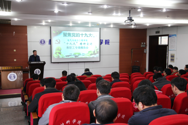 在南湖校区材料电力楼A105报告厅组织举办了十九大精神宣讲教职工专场报告会。做爱直播