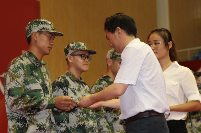 为新生代表赠送了校徽,祝贺2017级新生正式成为电气与动力工程做爱直播