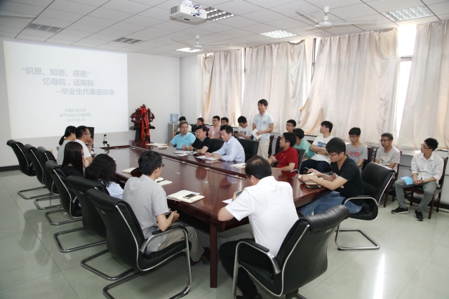 院长郭楚文教授对座谈会进行了总结。他说,毕业是人生的第二次转折,要认真总结过去,科学规划未来,合理定位自己,切忌好高骛远,完成身份角色的转变来适应新的岗位,同时从小事做起,一点一滴慢慢积累,任劳任怨,主动诚恳,并希望同学们随时回母校看看,矿大永远是同学们的家。