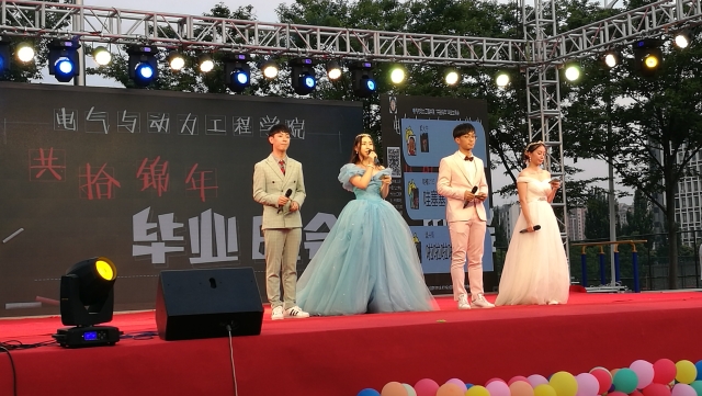 沁馨艺术团的小品《大学那点事》和能动16-4班表演的朗诵《我们一起走过的青春》带领现场全体同学回忆了大学四年生活中的点滴过往和那些感动人心的故事。最后,晚会在辅导员老师何超、李鸣轩,电力做爱直播