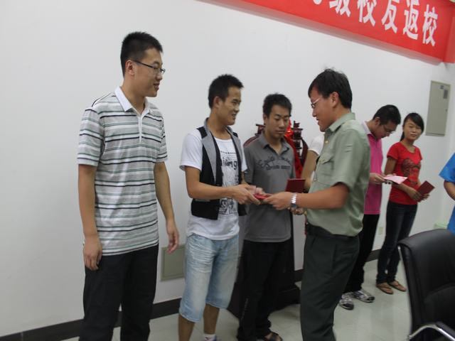 首先,曹海洋老师为7位11级的副班主任颁发了荣誉聘书。接下来,曹老师对几位副班主任的工作进行了总结点评。曹老师首先肯定了11级的几位副班主任的工作成绩,同时也对12级副班主任提出了几点希望,希望各位能够树立干部意识,要认清副班主任这份职务。其次要将宿舍作为日常管理的主阵地,积极关注新生的思想动态,同时要在新生与班主任之间架好桥梁,将工作做到位。
