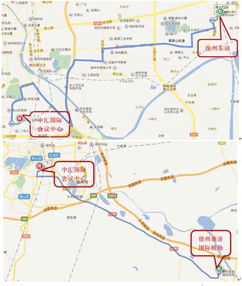 3.徐州观音国际机场:从机场乘坐机场大巴至中汇国际会议中心站下即到;出租车约100元。