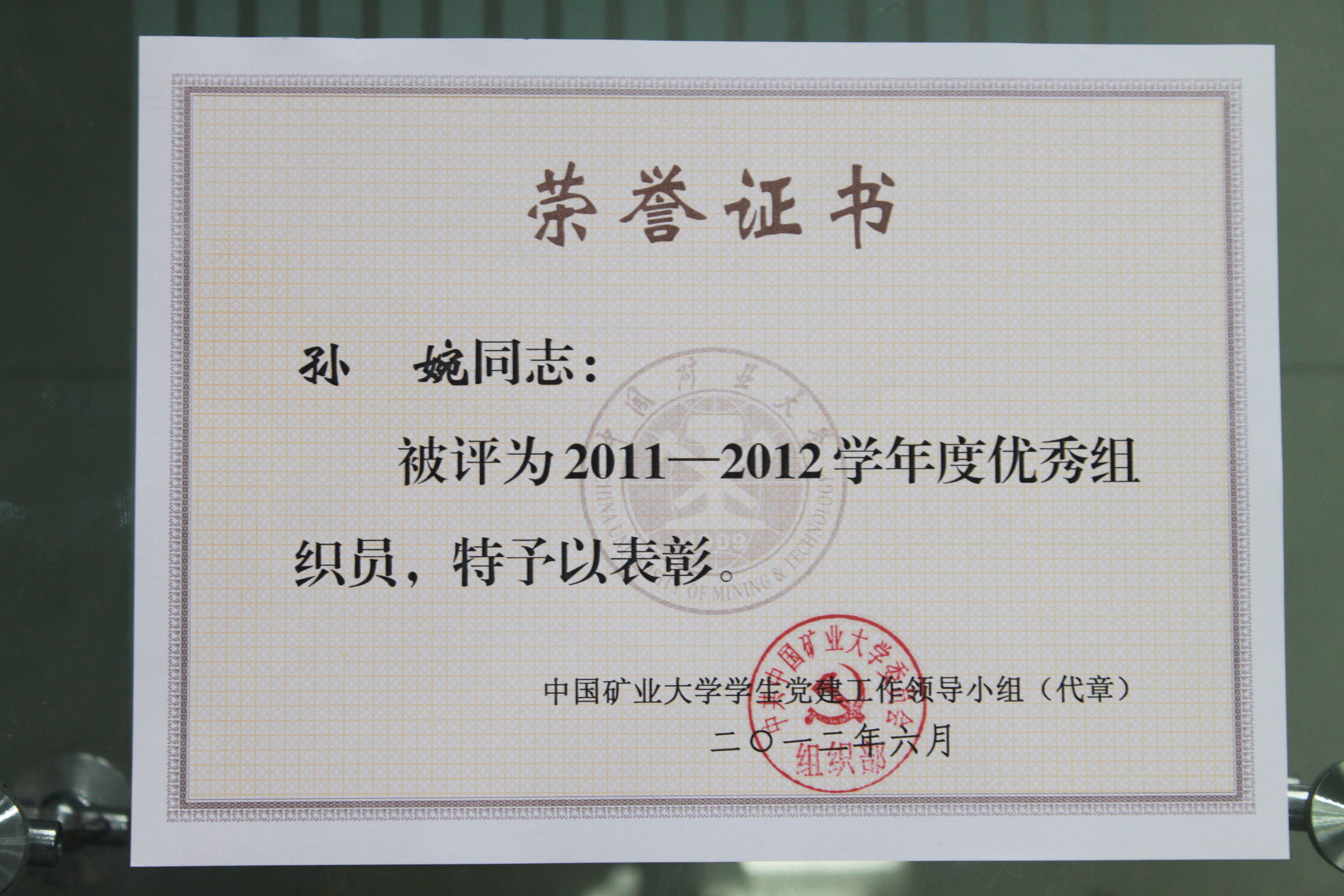 8. 孙婉荣获2011-2012年度“优秀组织员”;