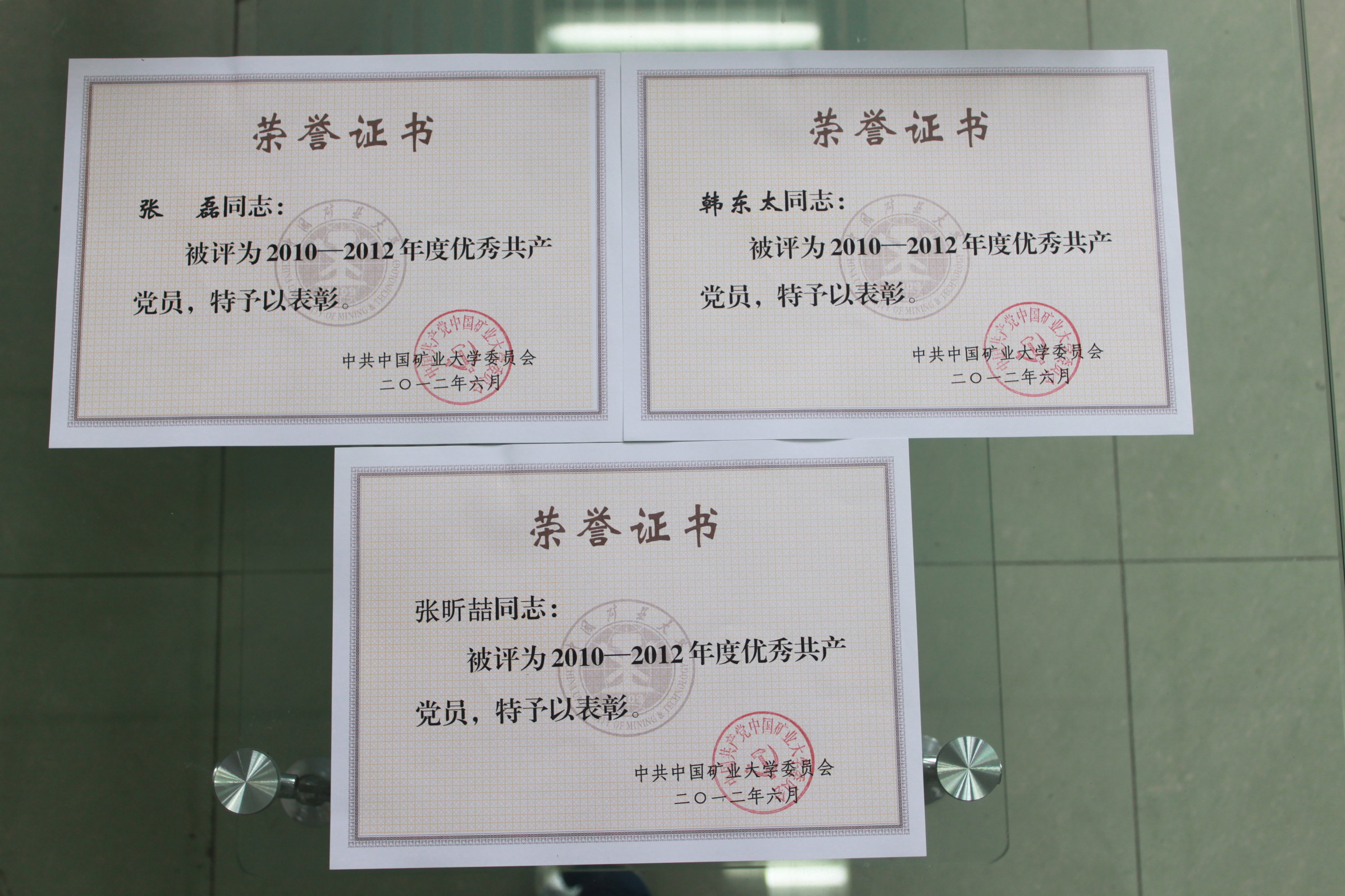 6. 张磊、韩东太、张昕喆荣获2010-2012年度“优秀共产党员”;