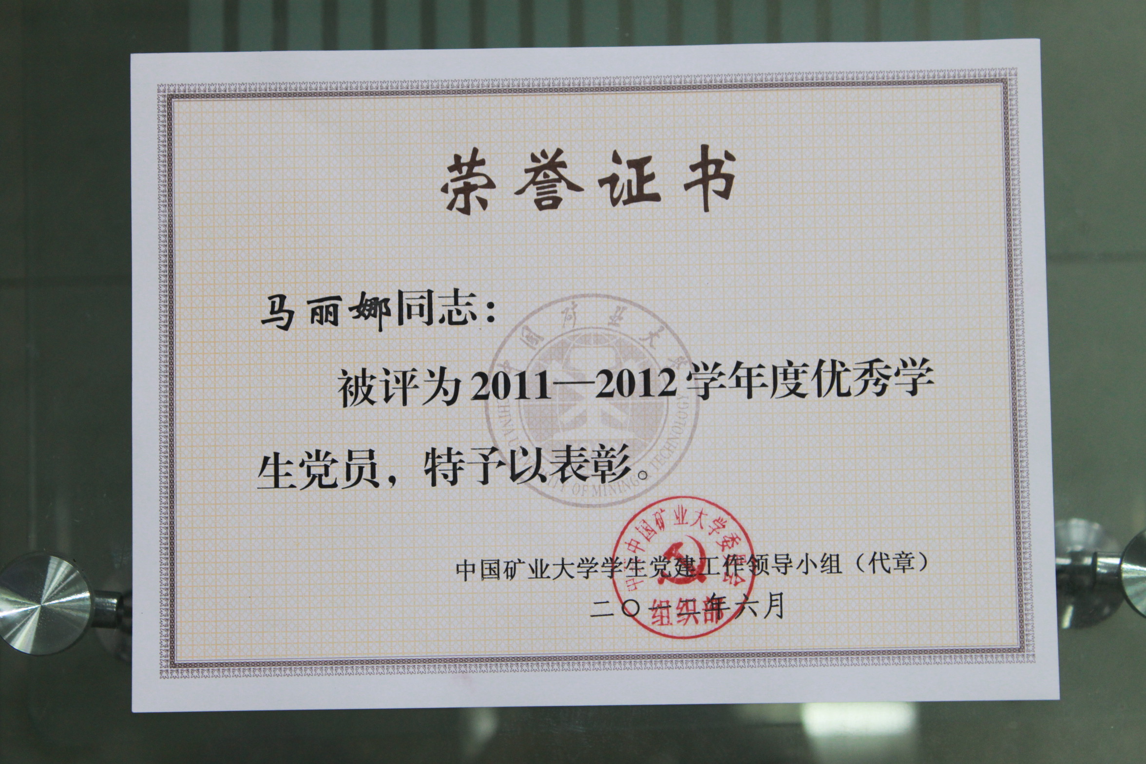10.马丽娜荣获2011-2012年度“优秀学生党员”。