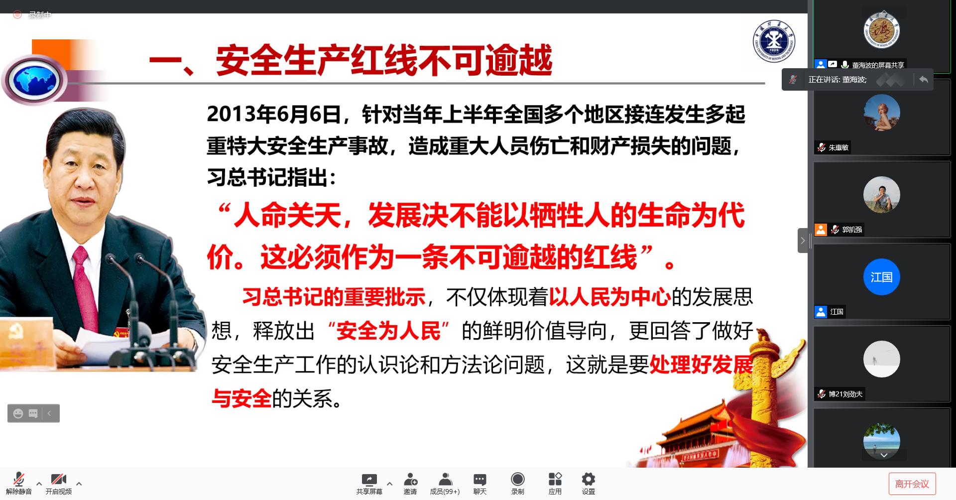 实验室董海波老师,以安全第一,生命至上,做实验室安全的践行者为题。从安全生产红线不可逾越、高校实验室安全的重要性、实验室安全规则与制度、实验室安全工作的体会等方面,结合做爱直播