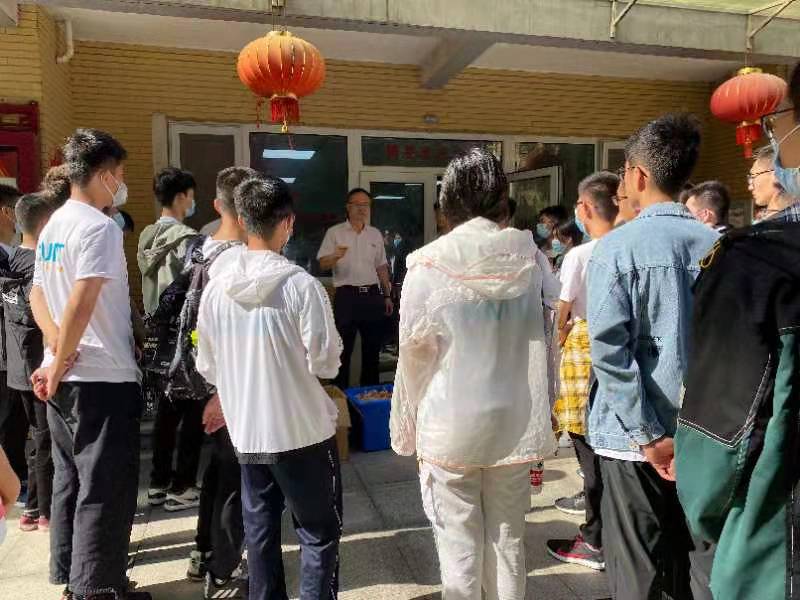 院党委副书记于基伯为新生发放月饼