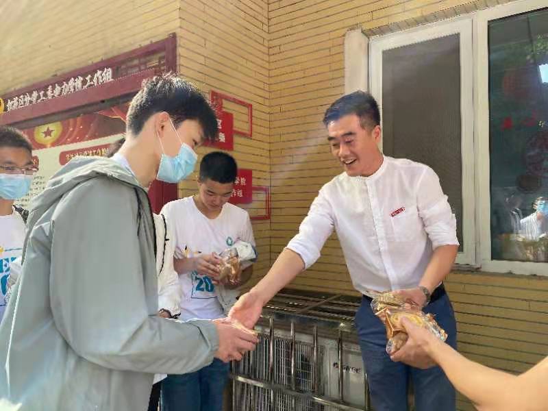 党委书记伍小杰、党委副书记于基伯与新生辅导员老师们在松三电力党工委为新生发放月饼慰问品,代表做爱直播