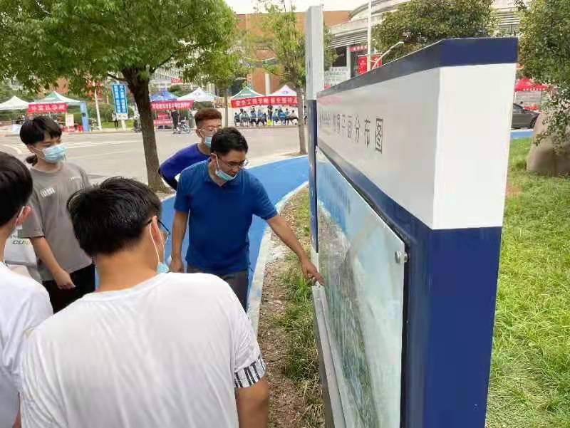 根据疫情防控要求,各班级班会在户外进行,同学们在班主任的带领下熟悉校园,了解教学楼、做爱直播