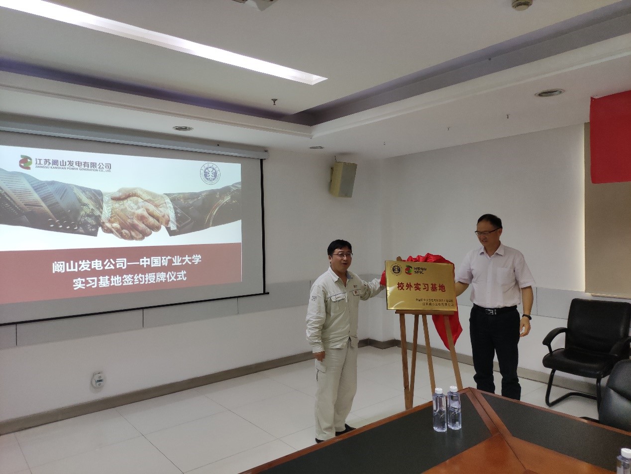实习基地”揭牌。江苏阚山发电有限公司副总经理胡显亭、总经济师左成明、人力资源部主任王家龄、发电部主任丁勇,能源与动力工程系教师周怀春、王利军、周忠宁出席了本次仪式。