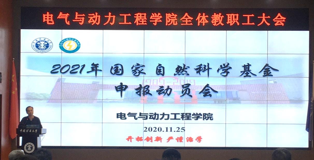 近五年国家自然科学基金申报情况以及未来五年发展潜力与目标进行了汇报,分析了电气工程与动力工程及工程热物理两个学科的自然科学基金方向,鼓励电气与动力两个学科之间的交叉融合。此外,还讲解了申报基金过程中的关键问题,以及项目获批应具备的几个特点,并建议大家多参加学术交流,提升业内影响力,不断向更高层次人才项目冲击。
