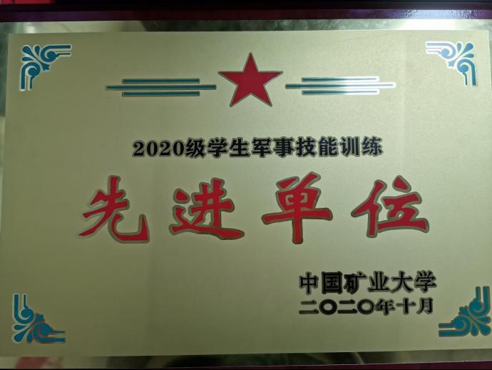 获得2020级学生军事技能训练先进单位称号,20级辅导员项青取得优秀指导教师荣誉称号。