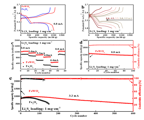 相关研究以“Regulating the polysulfide redox kinetics for high- performance lithium-sulfur batteries through highly sulfiphilic FeWO4nanorods”为题,在线发表于Chemical Engineering Journal(影响因子:10.652)。电力做爱直播