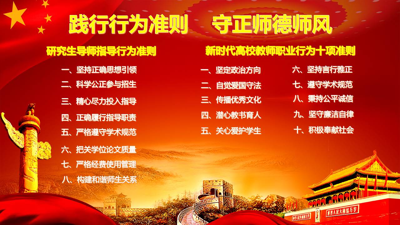 为扎实推进《中共中央国务院关于全面深化新时代教师队伍建设改革的意见》的实施,进一步加强师德师风建设,教育部研究制定《新时代高校教师职业行为十项准则》。准则包括以下内容: