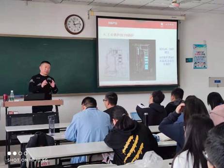 马鹏远高工结合自身的创业经历,向学生们介绍了燃烧器发展和设计领域的相关理论及实践,包括燃烧器发展历程、专业发展方向、燃烧器节能改造及低氮燃烧器设计等内容。课堂上,马鹏远高工结合现场视频和图片,对具体工程实践问题进行了说明,极大补足了课堂理论教学的不足。同时,他结合自身工作实践,向同学们介绍了燃烧器相关行业最新资讯,得到了同学们的热烈反响。同学们积极踊跃提问,学习热情高涨,课堂气氛活跃,取得了较好的课堂教学效果。