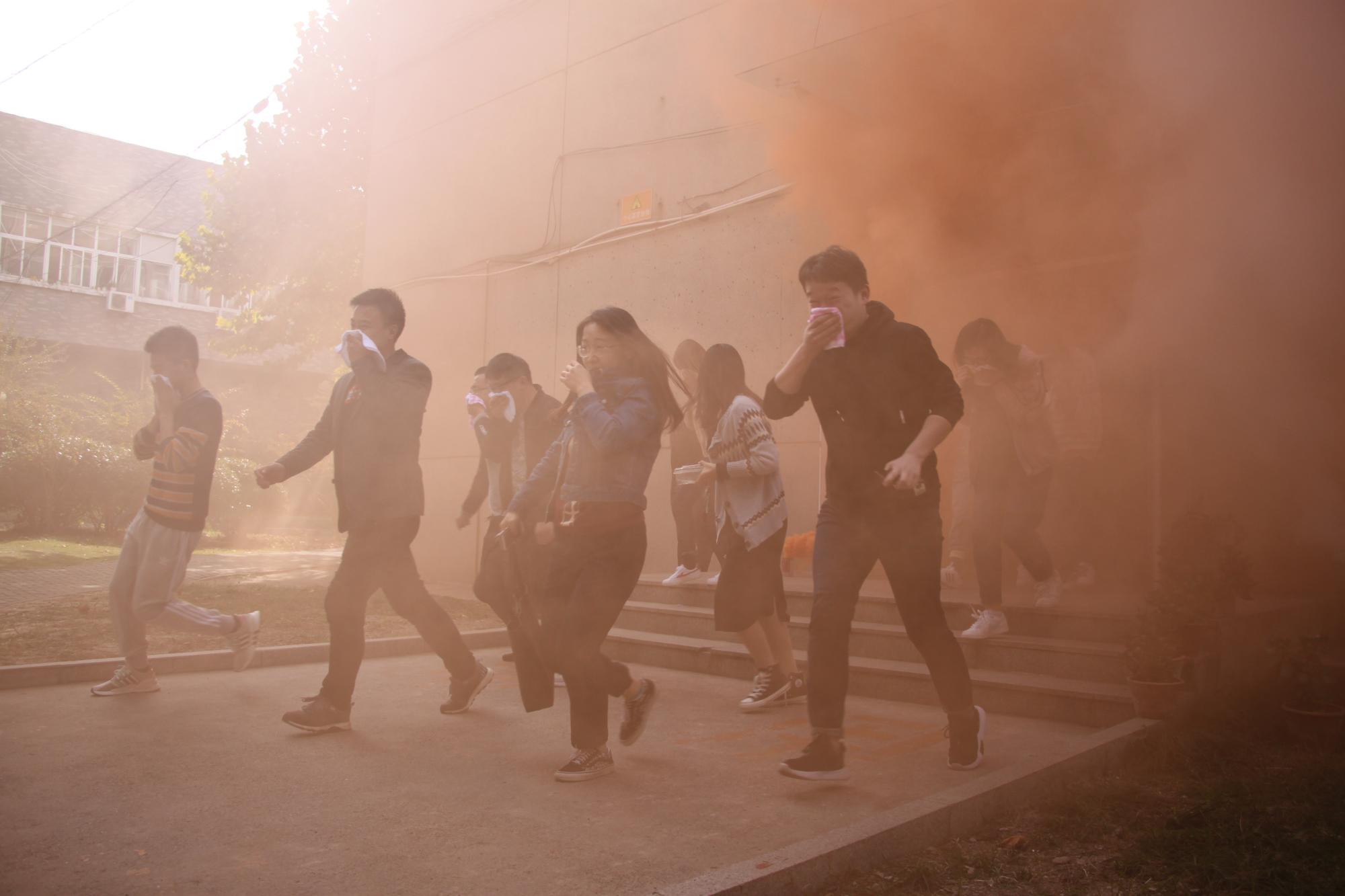 院长郭楚文与行政副院长江国对八位安全负责人进行工作安排:各负责人应提醒同学们注意安全,做到有组织有纪律的开展,并准备好演练过后的消防知识宣讲。下午2点,应急疏散演练正式开始。当警报声发出后,同学们在老师的组织下,按照紧急疏散路线,快速向楼下撤离。在撤离时,同学们在老师的引导下纷纷用湿毛巾捂住口鼻,俯身迅速从楼梯、疏散通道向安全地点撤离。在同学们全部疏散完毕后,信控做爱直播