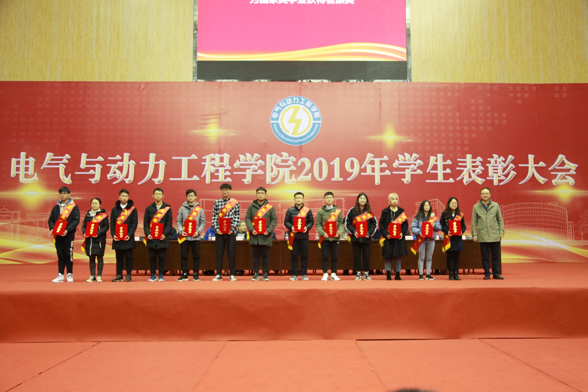 领导、老师分批次为获得先进班集体代表、国家奖学金、国家励志奖学金、校级一、二、三等奖学金获得者、年度电力之星颁奖。
