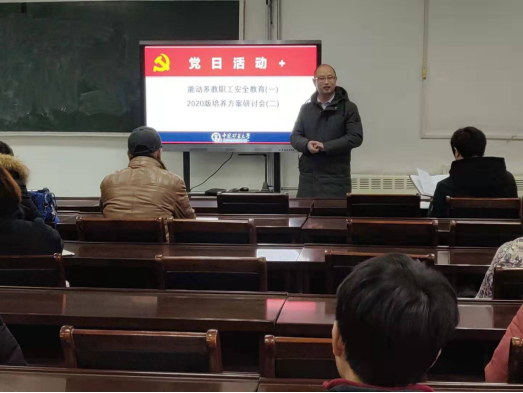 12月25日下午2:40,能动系“党日活动+教学法研讨”系列活动之“党日活动+能动系教职工安全教育(一)暨2020版培养方案研讨会(二)”于能源与动力工程实验中心A311会议室召开。会议由院教师第四党支部书记兼系副主任张保生主持,能动系全体教职工参加了此次会议。