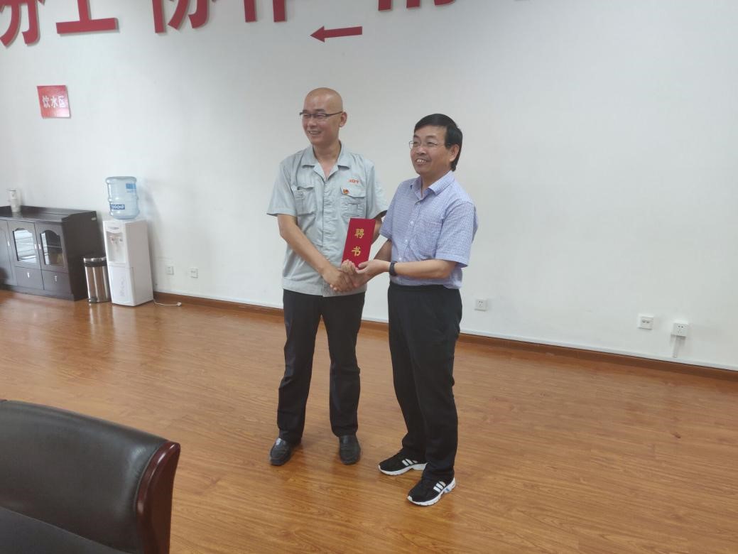 郭院长为徐州卷烟厂设备处处长颁发校外兼职研究生指导教师聘书