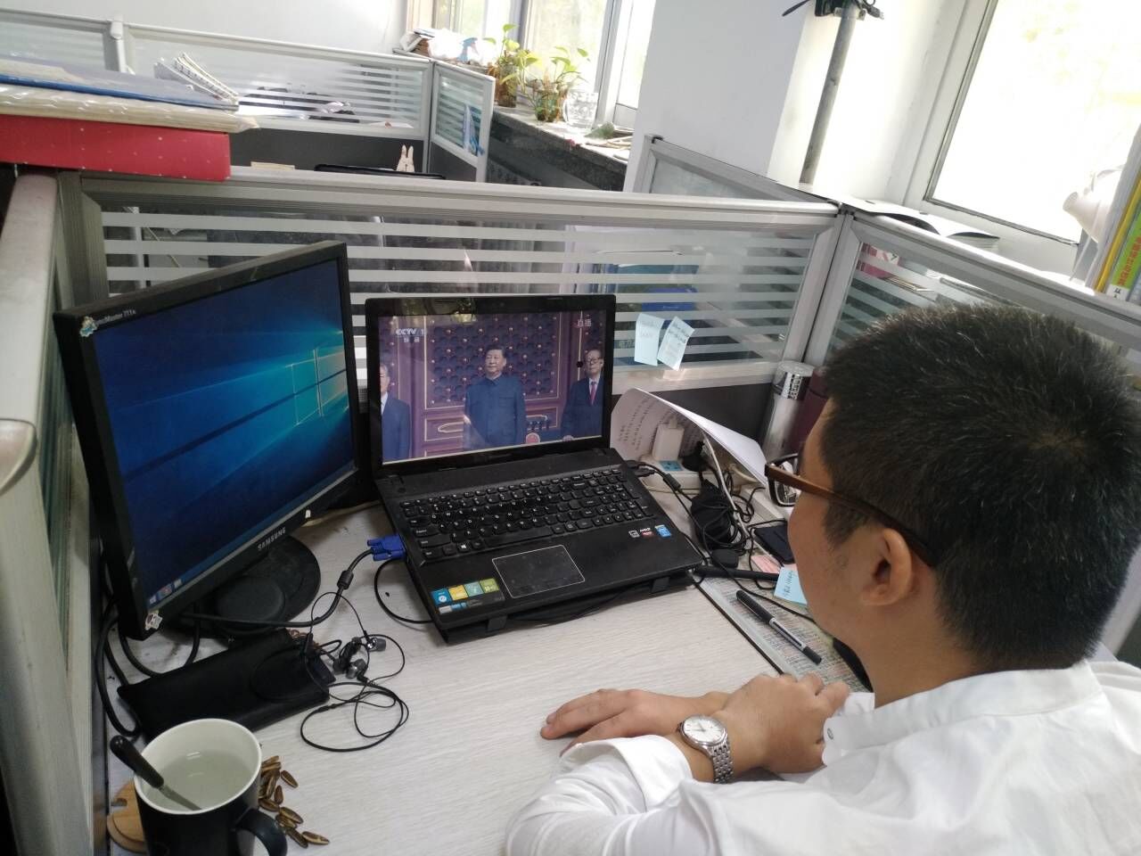积极组织师生收看中央电视台的电视直播,共同庆祝新中国成立70周年。