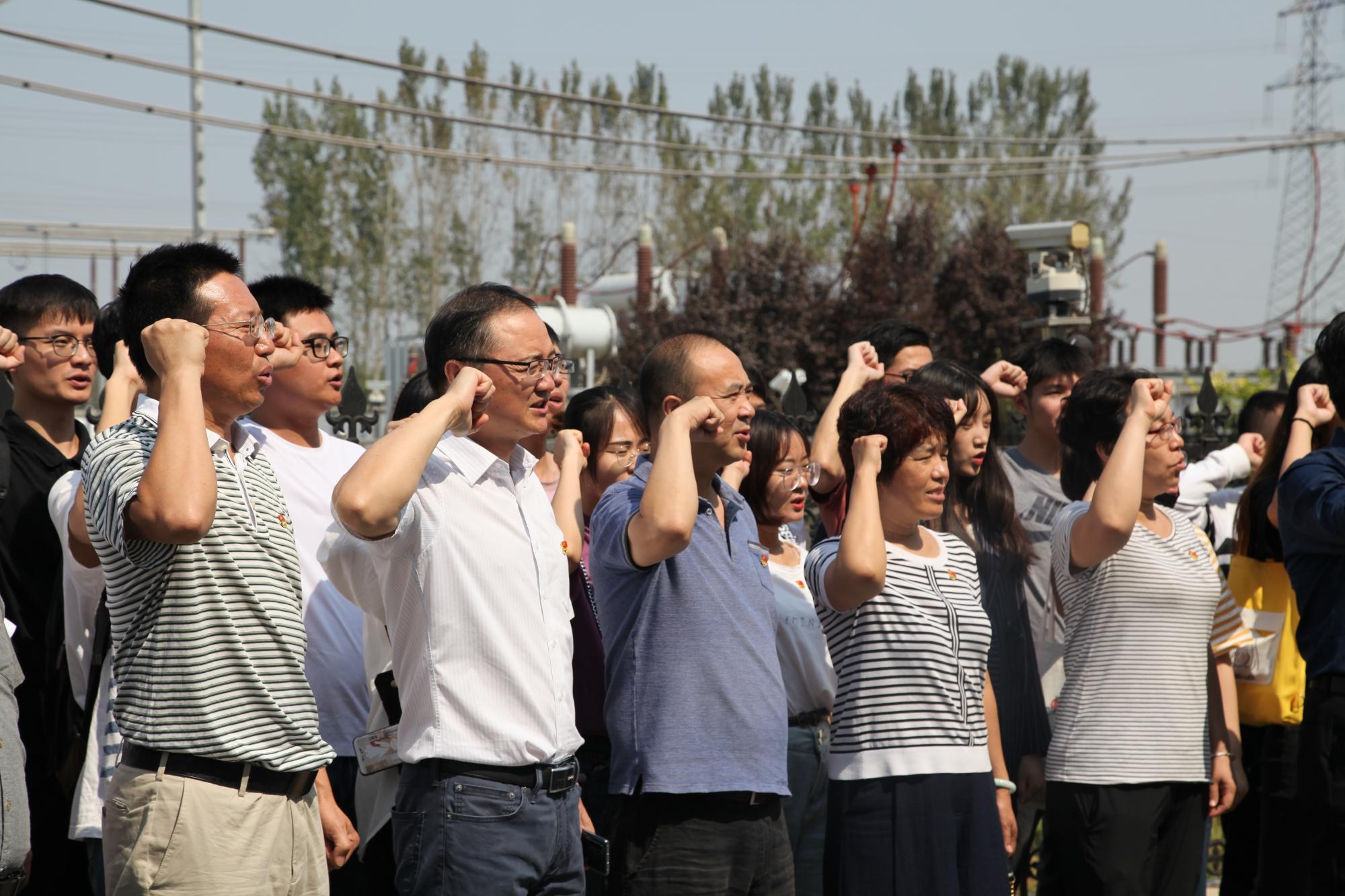 师生党员代表抵达三堡变电站,在工作人员的安排下,全体师生党员代表面向党旗,重温“入党誓词”。铿锵有力的宣誓声,表达了全体到场党员坚定政治信念和不忘初心使命、矢志永远奋斗的坚定决心。