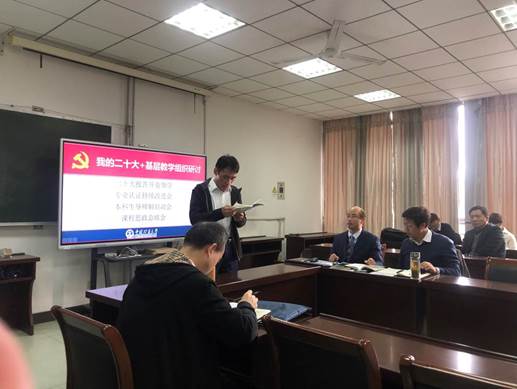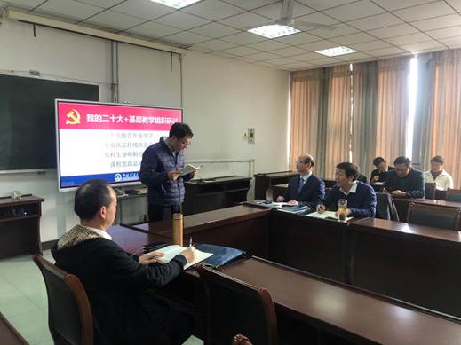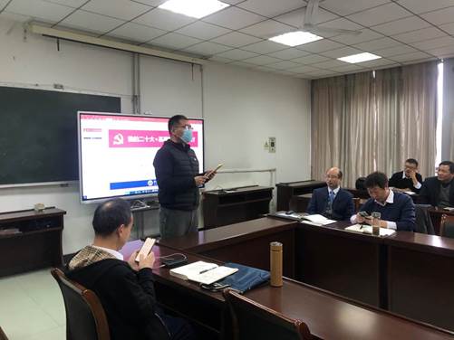 本次会议共分四个部分,第一部分由张保生老师主持,进行二十大报告开卷领学,教师支部委员申双林、王焕光、余波、张保生先后领学了“过去五年的工作和新时代十年的伟大变革”、“开辟马克思主义中国化时代化新境界”、“新时代新征程中国共产党的使命任务”、“加快构建新发展格局,着力推动高质量发展”四个部分,与会教师围绕领学内容展开讨论,认为二十大报告为下一步高等教育教学改革指明了方向,应通过深入学习,加强理解,并切实落实到日常教学及科研工作中。