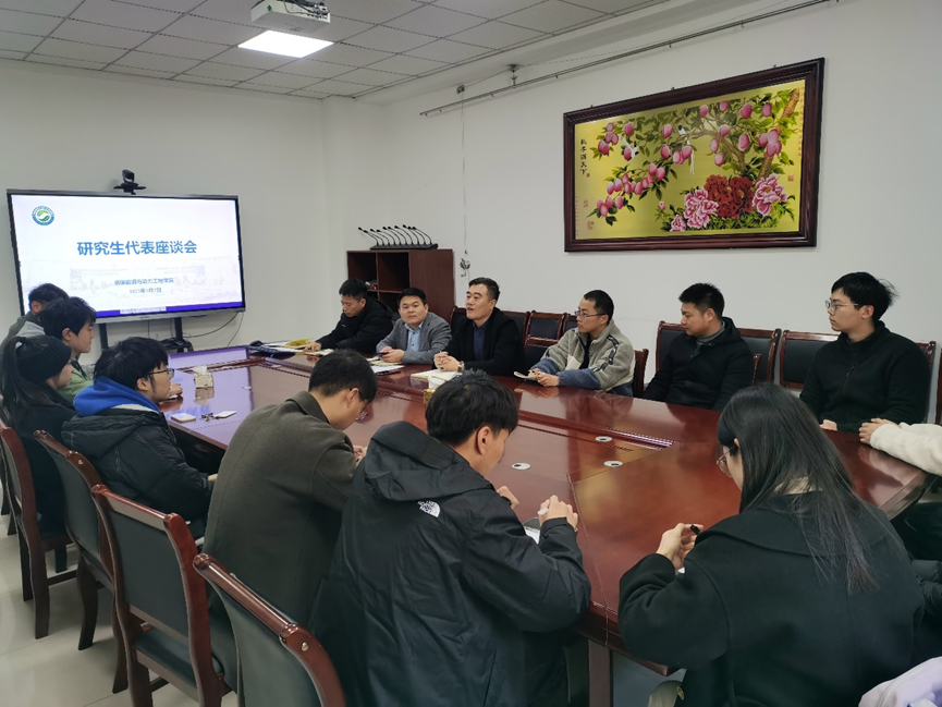 党委副书记于基伯、副院长刘方出席座谈会,研究生辅导员及各年级研究生代表、院研究生会代表等二十余人参加。